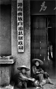 Countryside two old women sitting in doorway 1987