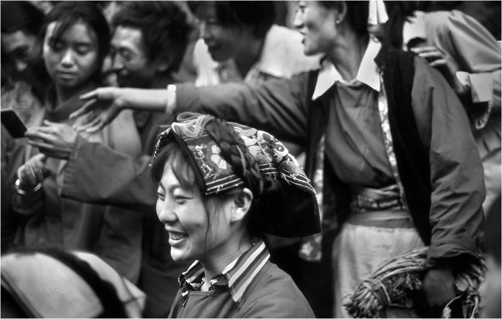 Li Xian Minority woman smiling in crowd 1987