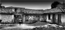 Old woman w cane walking to home 1987
